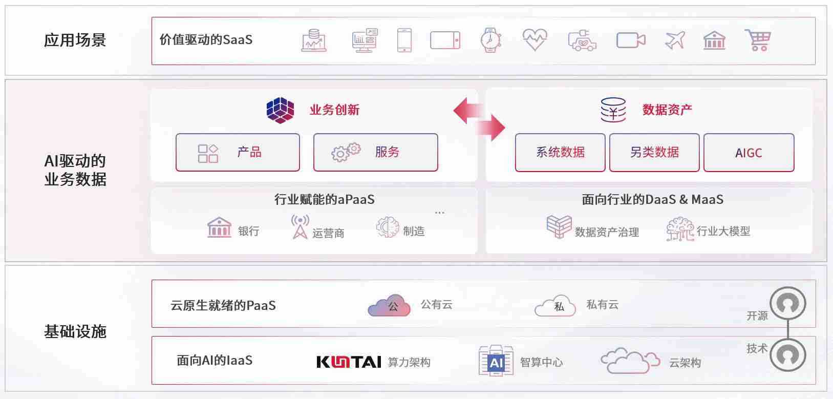 数字时代,,,,围绕企业数字化转型的关键要素,,,尊龙z6数码开创性的提出数云融合战略和技术体系框架,,着力在云原生、、、数字原生、、、AI原生和信创产业上架构产品和服务能力,,为处在不同数字化转型阶段的快消零售、、汽车、、、金融、、医疗、、、、政企、、教育、、运营商等行业客户提供泛在的敏捷IT能力和融合的数据驱动能力,,,,构建跨界融合创新的数字业务场景和新业务模式,,,助力企业级客户建立面向未来的核心能力和竞争优势,,,,全面推动社会的数字化、、、智能化转型升级。。。。