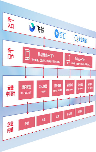 对协作平台提供支持服务,,支持企业应用与协作平台对接,,,,包含组织同步、、消息集成、、、待办集成等。。。支持目前主流的协作平台:钉钉、、、、企微和飞书。。。